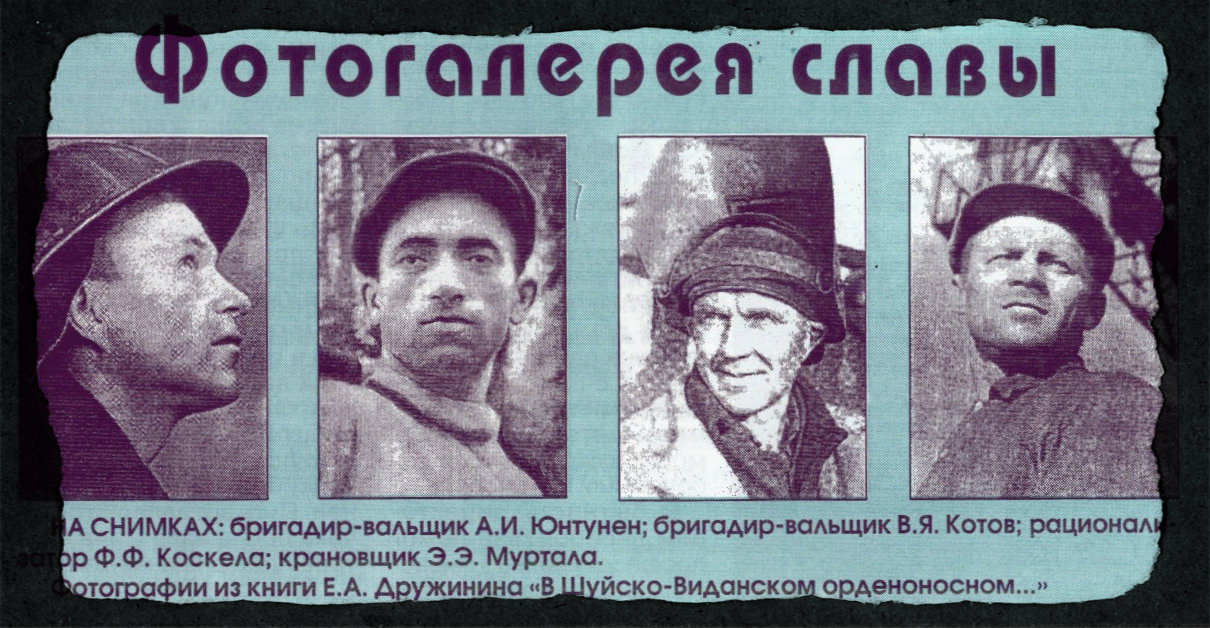 Вальщики леса: Котов В., Лейво Э., Воронко Ч., крановщик Муртала Э., машинист УЖД Сойту Н. – они стали кавалерами «Ордена Ленина».